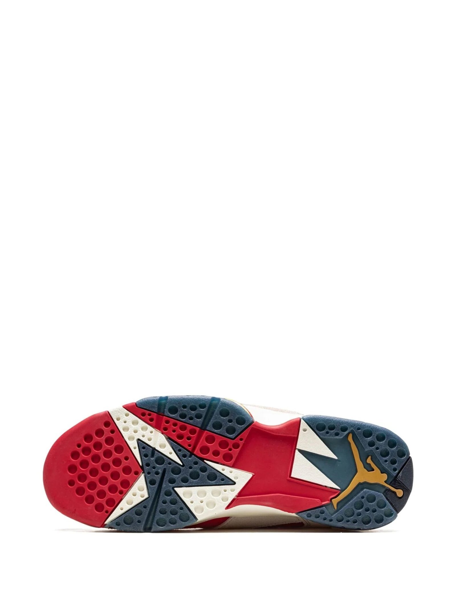 Jordan’s sneaker boutique and Jordan Brand on his father’s seventh signature shoe. Dressed in a ‘USA’ inspired look, this sneaker features a True Red suede base with cream suede overlays. Michael Jordan’s signature is debossed on the lateral side of the heel and a metallic gold Jumpman emblem appears on the collar. Additional gold accenting is found on the gold medal-inspired heel tabs.