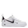 Black leather Air Force 1 ’07 low-top sneakers from Nike featuring a signature Nike swoosh, a perforated style, a round toe, a lace fastening and a flat rubber sole.